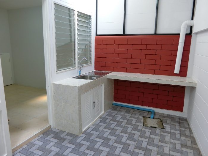 **ฟรีมุงหลังคาและปูกระเบื้องในส่วนของครัวหลังบ้าน