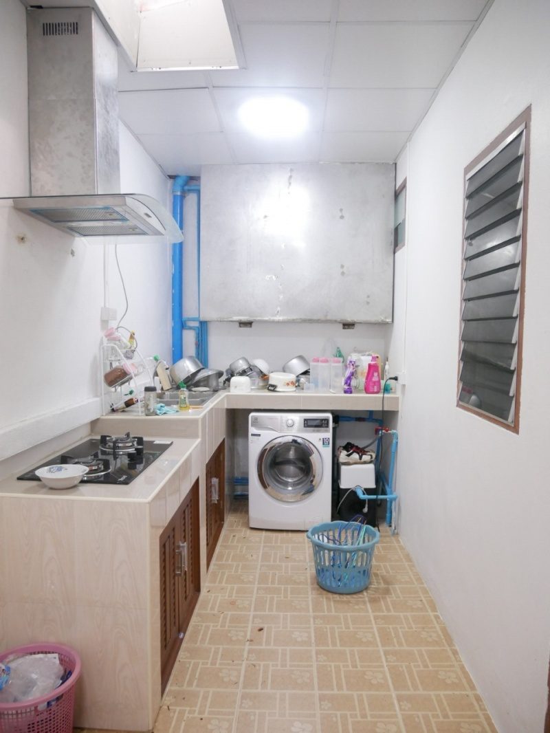 **ฟรีมุงหลังคาและปูกระเบื้องในส่วนของครัวหลังบ้าน